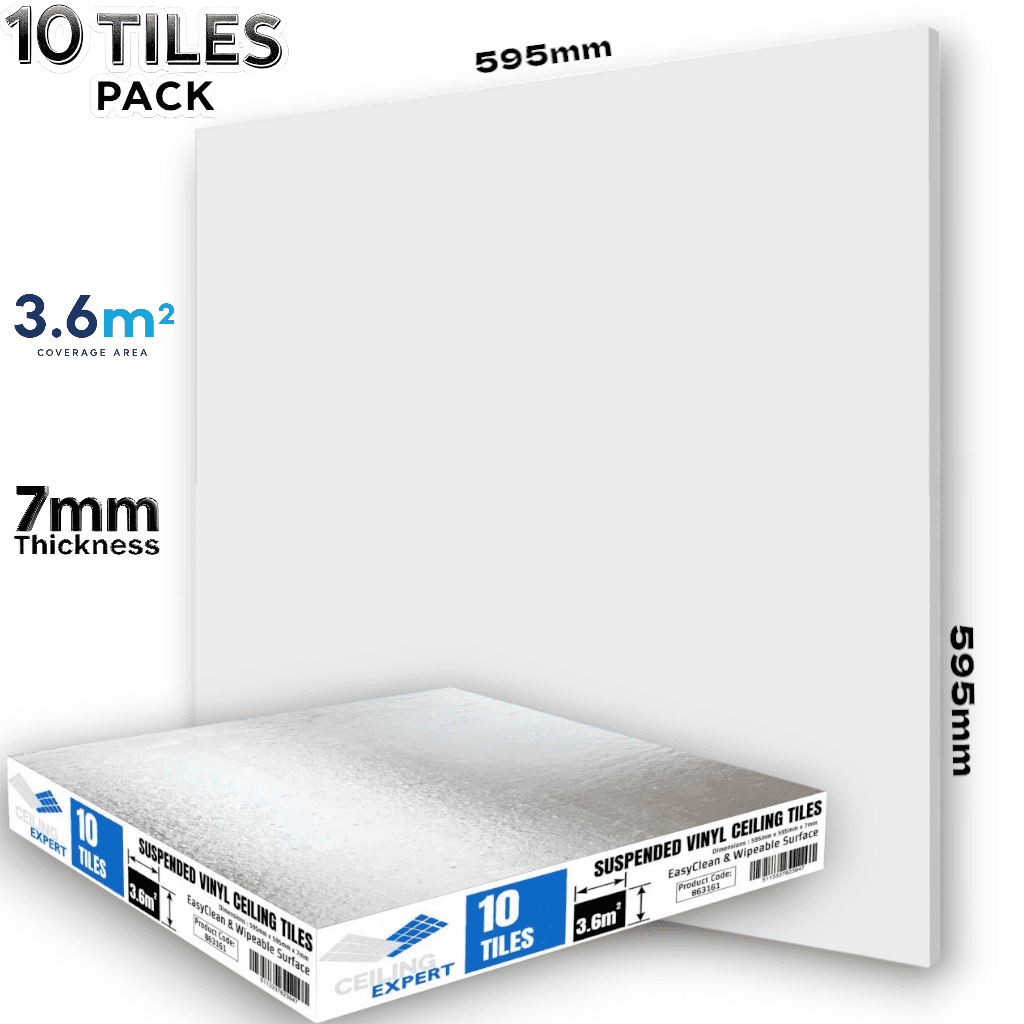 This pack of 10 tiles delivers both style and substance, ensuring a clean, sophisticated, and environmentally conscious environment. Share your area measurements and business specifics, and let us guide you to the perfect choice from our extensive range of suspended ceiling tiles and grids."