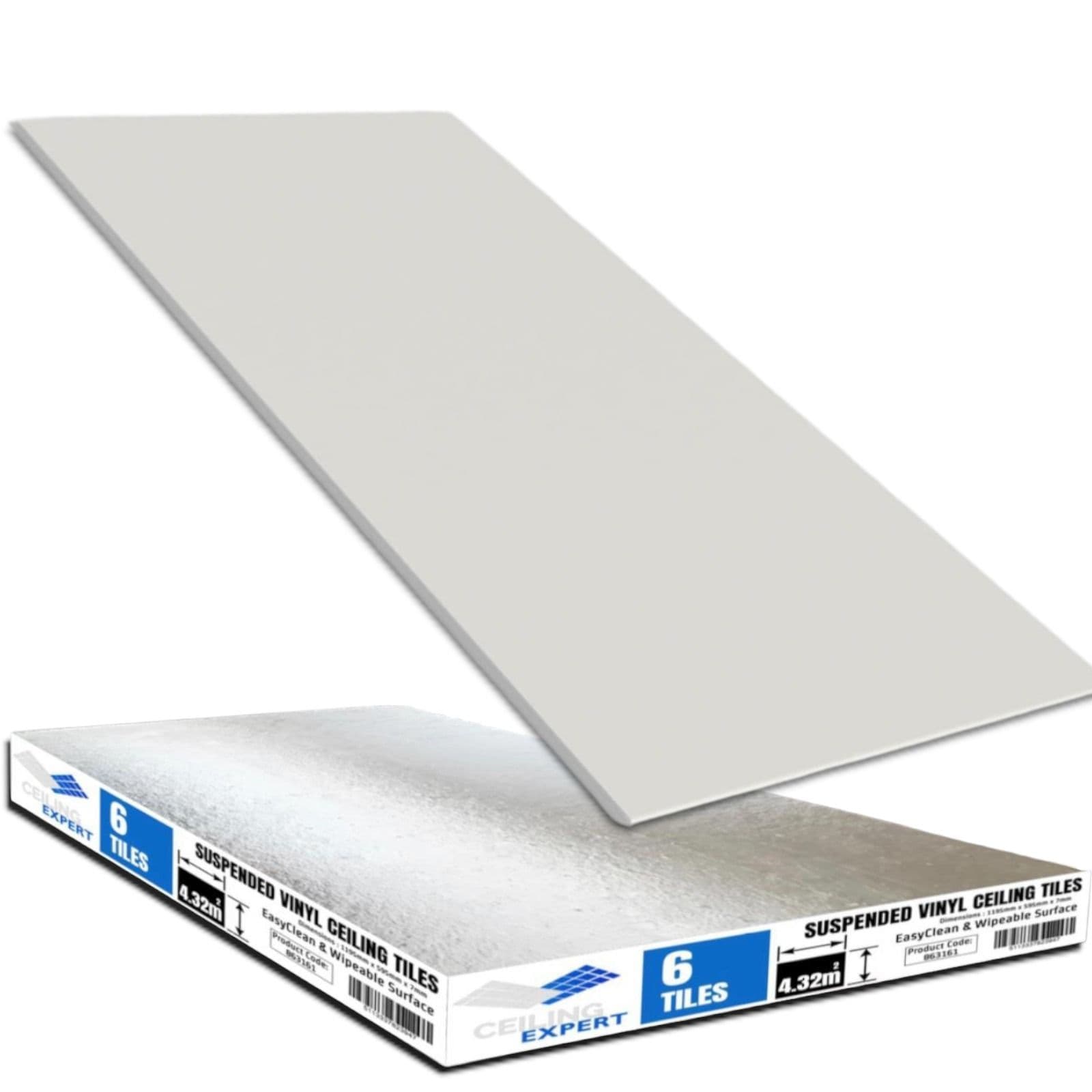 Suspended Ceiling Tiles, EasyClean & Wipeable, 1195mm x 595mm, For 1200mm x 600mm Grid System White